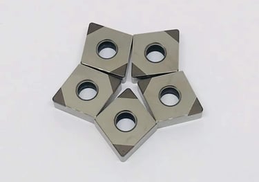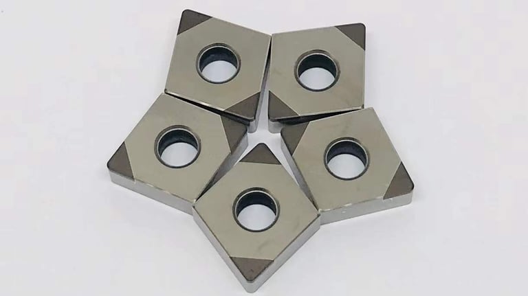 Polycrystalline Cubic Boron Nitride (PCBN) is specifically designed for cast iron and ferrous material machining.