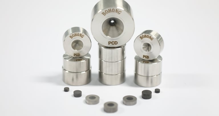 PCD Die Blanks are made of a polycrystalline diamond layer bonded to a tungsten carbide substrate under high pressure and high temperature. They offer exceptional wear resistance, high hardness, and excellent dimensional stability for precision wire drawing applications.